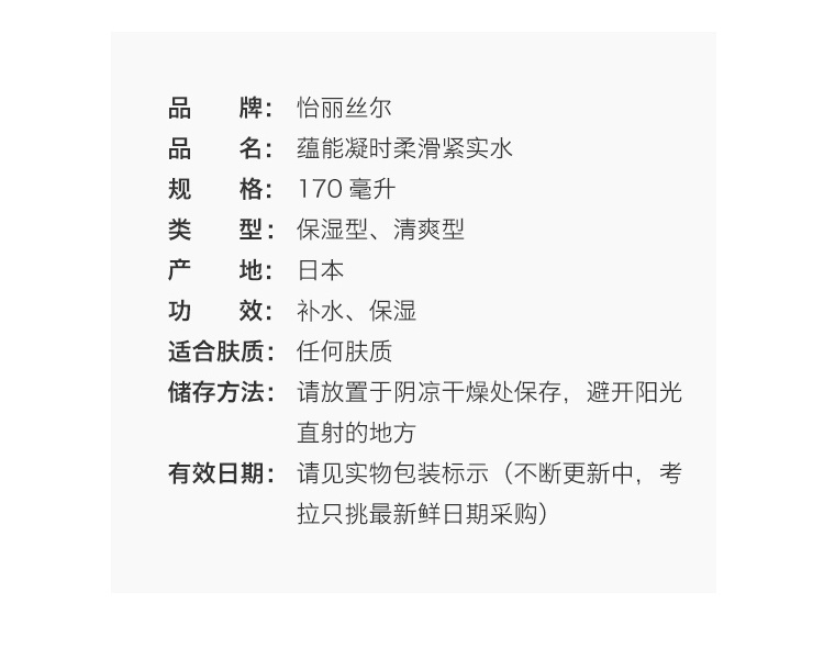 怡丽丝尔 elixir 【黑金系列一号化妆水】【清爽型】¥210 怡丽丝尔 elixir 【黑金系列一号化妆水】【清爽型】個 お買い物カゴに追加 カテゴリー: uncategorized, 化妆品 ブランド: 资生堂 説明 レビュー (0) 説明 レビュー レビューはまだありません。 “怡丽丝尔 elixir 【黑金系列一号化妆水】【清爽型】” の口コミを投稿します コメントをキャンセルメールアドレスが公開されることはありません。 ※ が付いている欄は必須項目です評価 * 評価… 最高 良好 平均 良くない 悪い レビュー *名前 * メール * 次回のコメントで使用するためブラウザーに自分の名前、メールアドレス、サイトを保存する。 関連商品 怡丽丝尔 elixir 【黑金系列一号乳液】 【清爽型】 ¥248 お買い物カゴに追加 怡丽丝尔 elixir 【黑金系列二号乳液】【滋润型】 ¥248 お買い物カゴに追加 怡丽丝尔 elixir 【黑金系列三号化妆水】【超级滋润型】 ¥210 お買い物カゴに追加 怡丽丝尔 elixir 【黑金系列三号乳液】【超级滋润型】 ¥248 お買い物カゴに追加